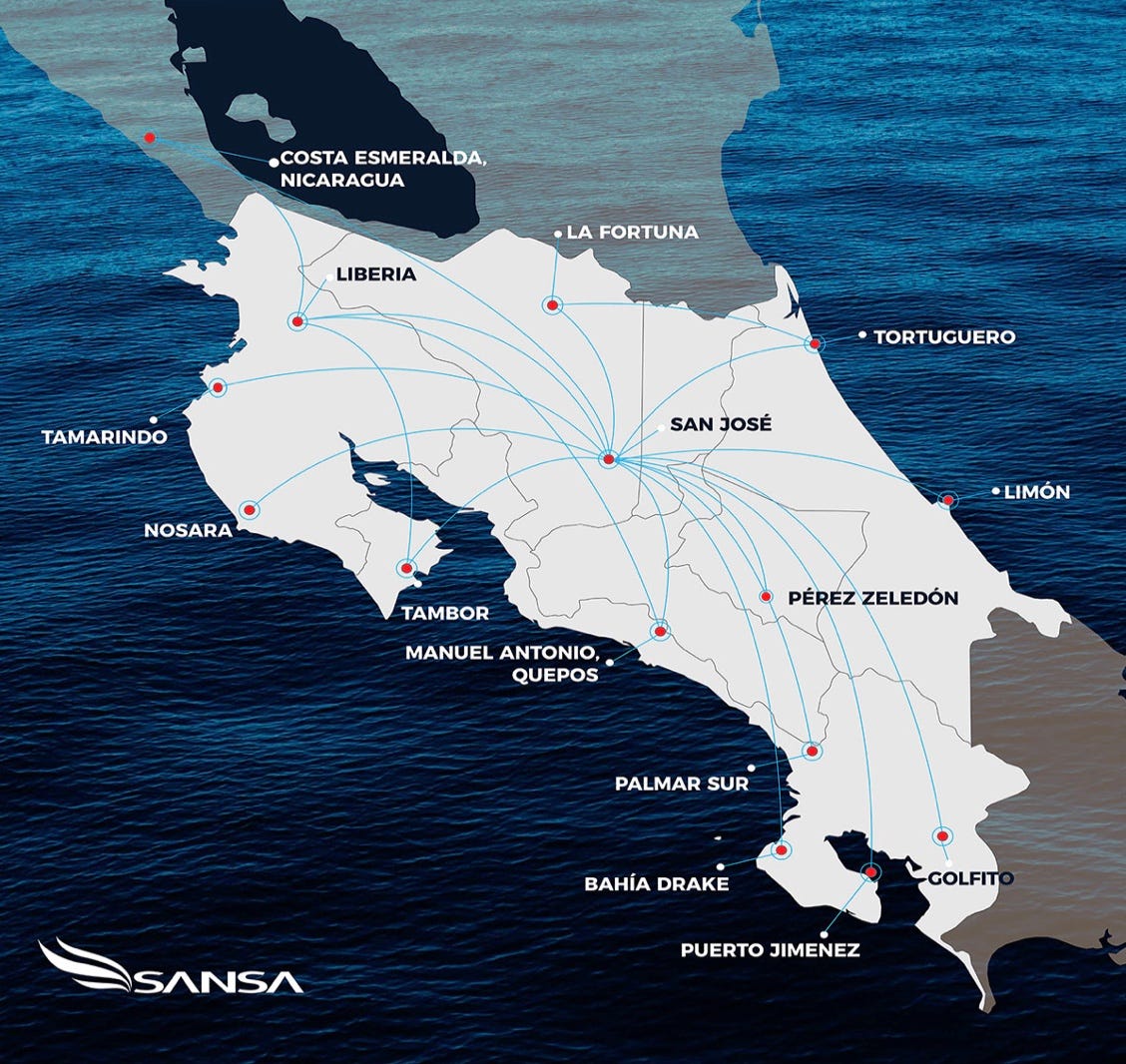 SANSA is well-established in Costa Rica — it’s been flying since the 1970s — and has an extensive network. Green Airways has scheduled service to just three destination, though they also offer charter flights.